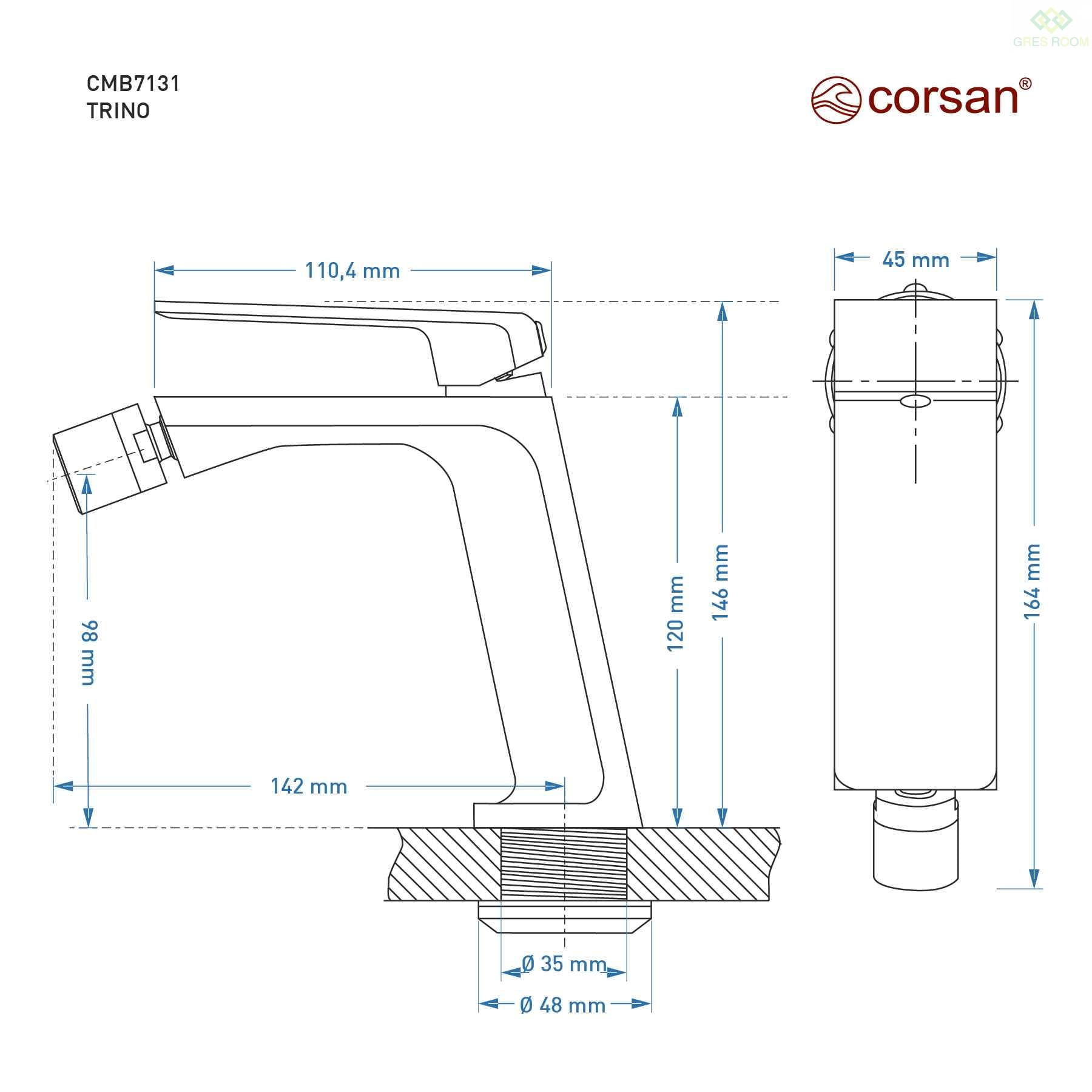 Bateria bidetowa Corsan CMB7131CH Trino chromowana