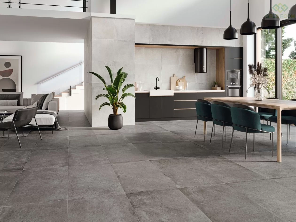 Dzięki swojej wytrzymałości i odporności na ścieranie, płytki z tej kolekcji są doskonałym wyborem do miejsc o dużym natężeniu ruchu. Antracytowy kolor jest elegancki, ale praktyczny, maskując drobne zabrudzenia. Wielkoformatowe płytki 60x60 cm optycznie powiększają przestrzeń, nadając jej wrażenie przestronności i głębi.