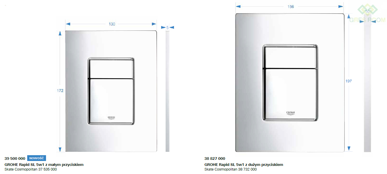 - Nowy przycisk jest o ponad 25% mniejszy od standardowych przycisków Grohe