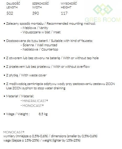 MARMORIN LIRA 50 UMYWALKA MEBLOWA / WPUSZCZANA W BLAT