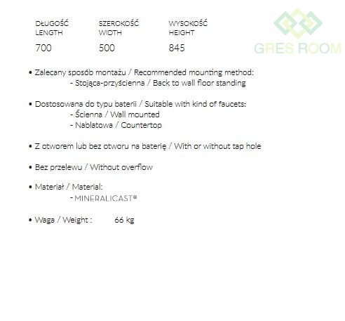 MARMORIN TEBE 70 S UMYWALKA STOJĄCA PRZYŚCIENNA