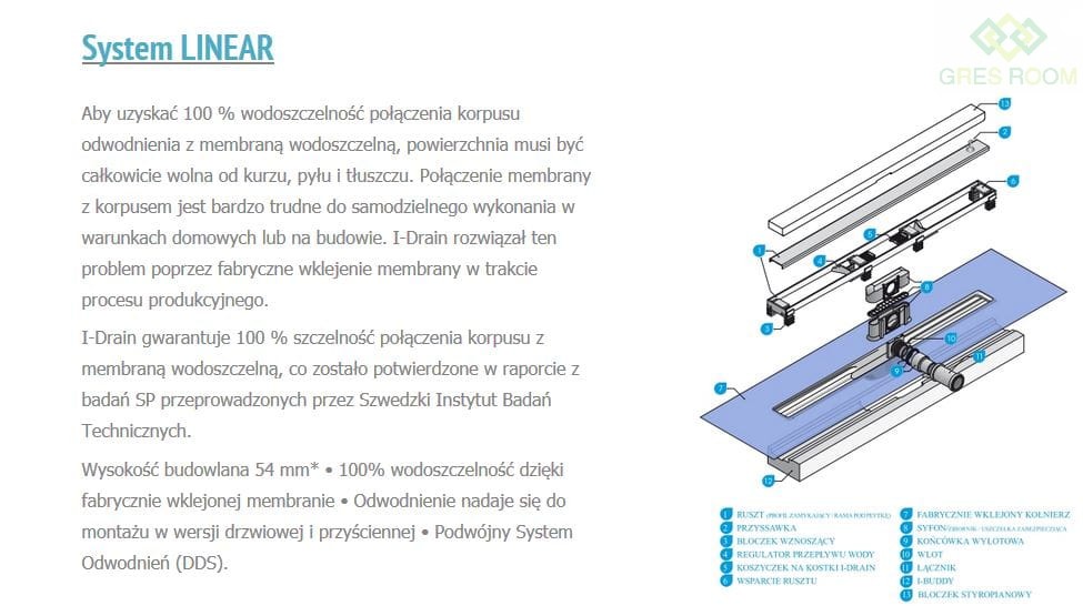 Odpływ liniowy I-Drain Linear 54 100 cm bez rusztu