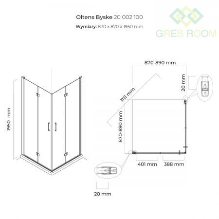 Oltens Byske kabina prysznicowa 90x90 cm kwadratowa
