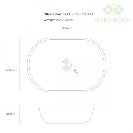 Oltens Hamnes Thin umywalka 80x40 cm nablatowa owalna biała