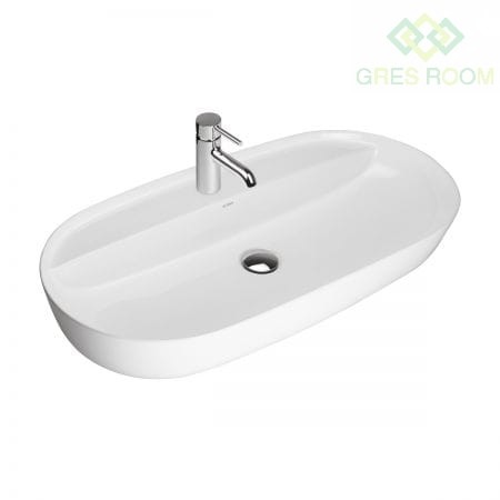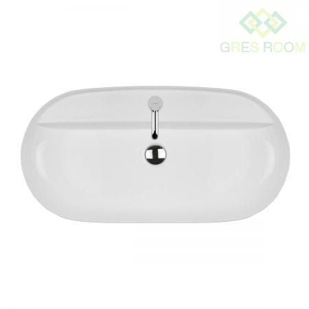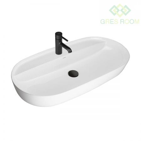Oltens Hamnes Thin umywalka 80x40 cm nablatowa owalna biała