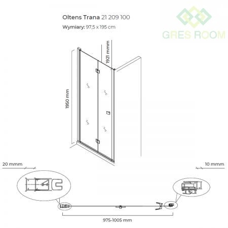 Oltens Trana drzwi prysznicowe 100 cm wnękowe