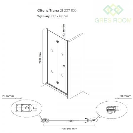 Oltens Trana drzwi prysznicowe 80 cm wnękowe