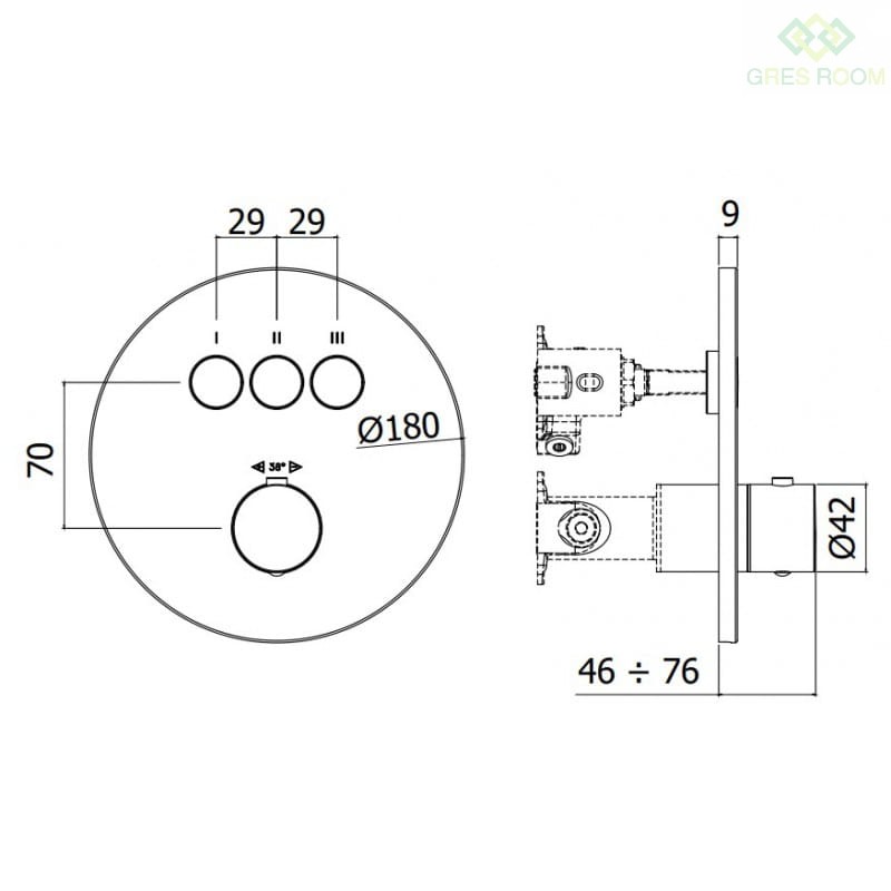 - Podtynkowa termostatycza bateria prysznicowa (3 funkcje)