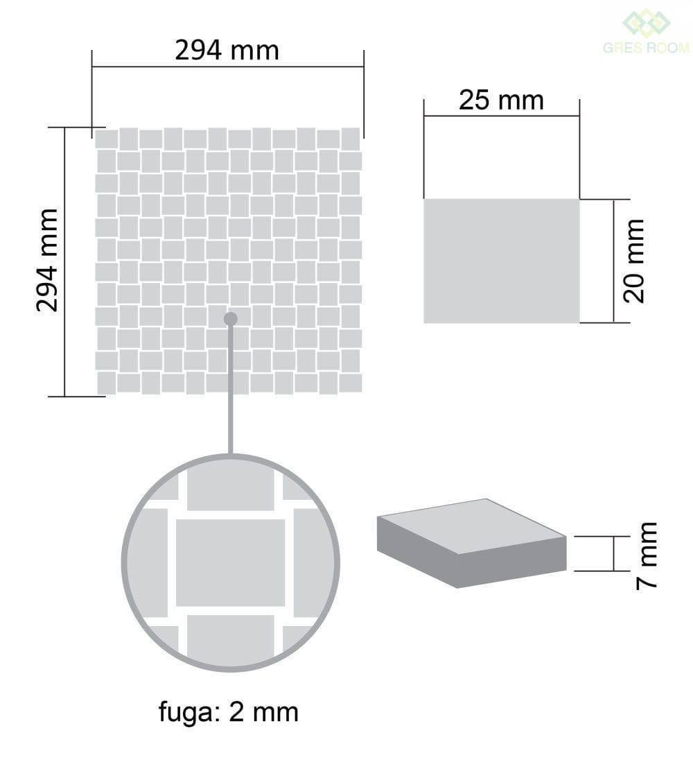 - Wymiar arkusza mozaiki: 294 x 294mm (0.082m2)