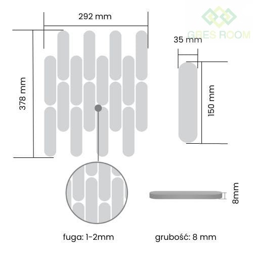 - Wymiar pojedynczego kafelka: 35 x 150mm