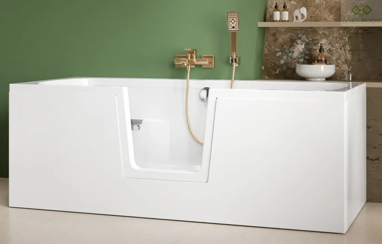 Wanna z drzwiami dla seniora Ovi 160 × 75 cm z drzwiami na środku – Polimat