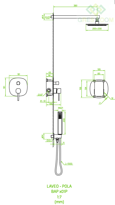- Wymiar deszczownicy: kwadrat 200x200