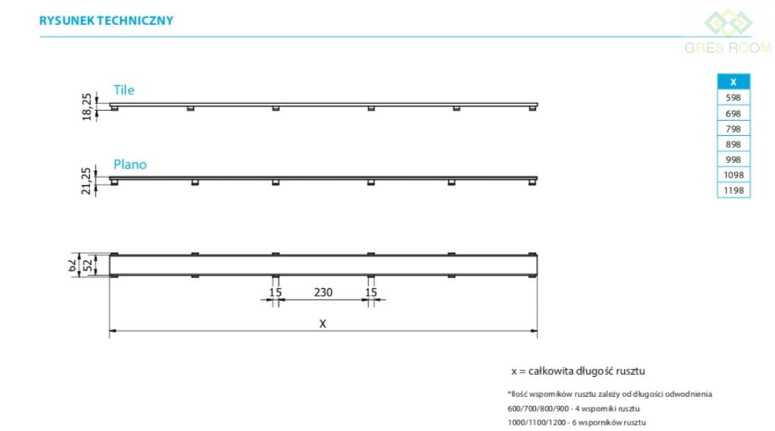RUSZT TILE BASE DO ODPŁYWU LINIOWEGO I-DRAIN 100 CM