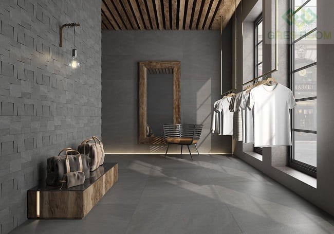 - Design inspirowany kamieniem: Wierne odwzorowanie naturalnego kamienia nadaje pomieszczeniom luksusowego wyglądu. Grafitowa barwa oraz geometryczny charakter płytek sprawiają, że stanowią one estetyczny punkt centralny każdej aranżacji, wnosząc do niej wyrafinowanie oraz głębię.