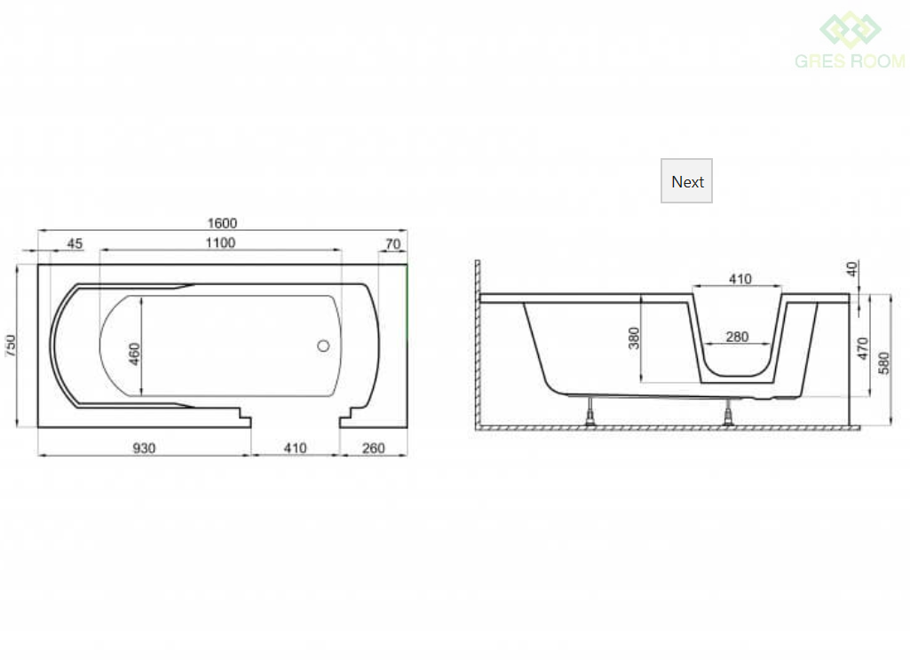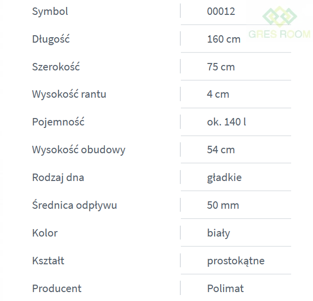 - Modele 160x75 cm oraz 180x80 cm nie posiadają górnego przelewu!