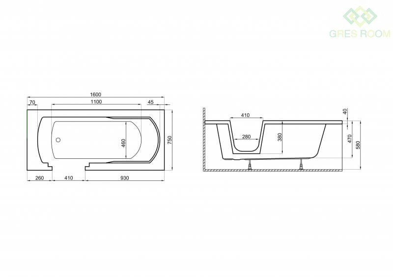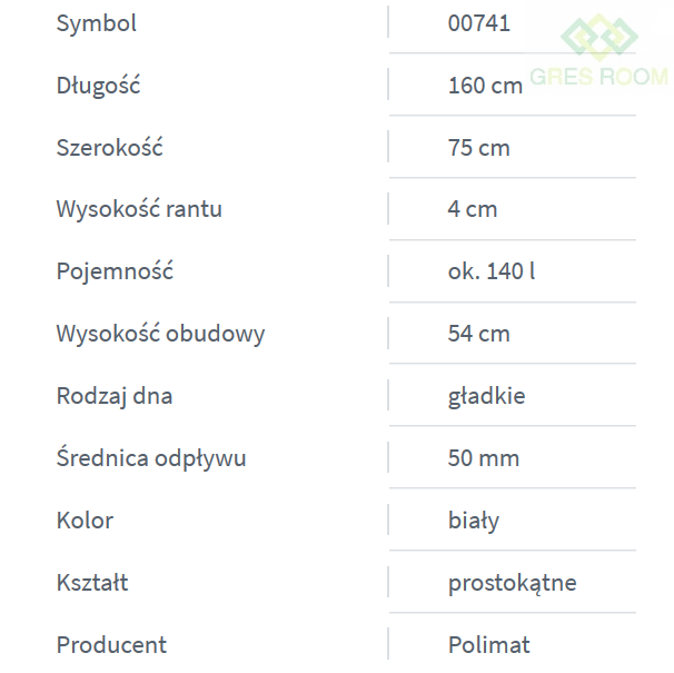 - Modele 160x75 cm oraz 180x80 cm nie posiadają górnego przelewu!