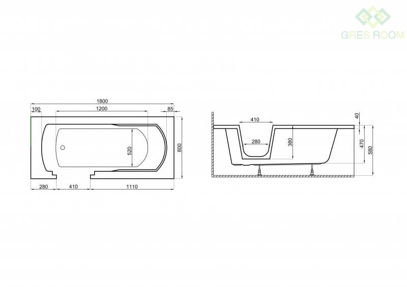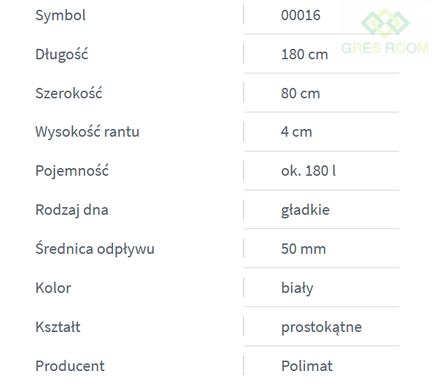- Modele 160x75 cm oraz 180x80 cm nie posiadają górnego przelewu!